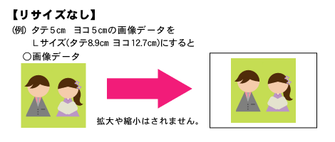 「リサイズなし」は画像データを拡大や縮小することなく、画像サイズ(ピクセルサイズ)のまま、写真にプリントされます。