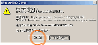 3) 次に BFup ActiveX コントロールからセキュリティ警告ダイアログが表示されますので [はい]ボタンを押してください。